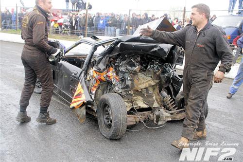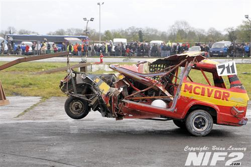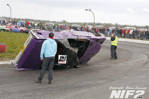 Jay Jay McConaghie took a hat trick of wins in the Robins, but the biggest talking point was Anthony McIvor's attempt on a last bender in the final, from way too far back he had an attempted lunge at McConaghie and missed, ending with the car spectacularly going roof first into the pit gate post, completely destroying the car and giving us all one of those moments where you stand about silent just hoping your going to see the driver move, thankfully he got out unscathed, but looking at the car you tend to wonder how.