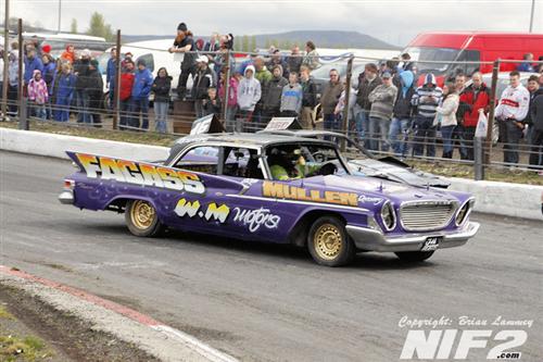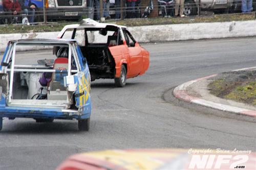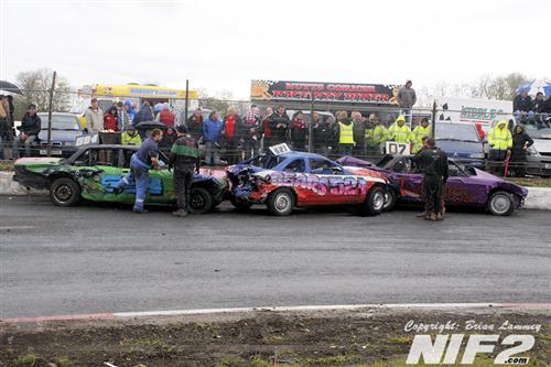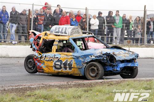 Team Buckle had a larger than usual team, The Bears had a smaller than usual team, which was very quickly one lighter in the first heat and the Condoms made what you’d probably call their first proper team entry to Shamwreck, the Levellers and the Last Rites, also had a good turnout. Mike Flaherty or 'Fagass' won the best presented award for a superbly turned out, Chrysler Windsor according to the badges on it, and circa early 60's after a little research on google. On the track Darren Nash won the opening heat which seen a big roll for one of the big yanks at the meeting in the hands of Danny Poynton. Heat two was won by Kieran McIvor who was then savaged by a Bear after the flag, while the final itself went to World Champion Shane Davies who even had time to follow in a parked car. Nutty Nige of the Bears took the prize for entertainer of the day.
