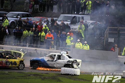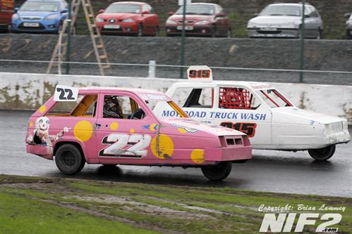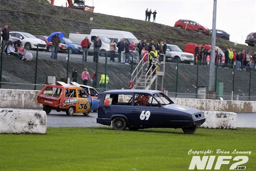 Saturday seen the Bangers in their 2 Litre form with cars numbers in the high twenties. English visitor Kilford came out in top of the bangers as English drivers filled the top three places in the Irish Open itself. Steven Reynolds took the all comers race and it was him and Kilford who ended up the last two running in what seemed like a lengthy DD, Reynolds eventually coming out the victor.