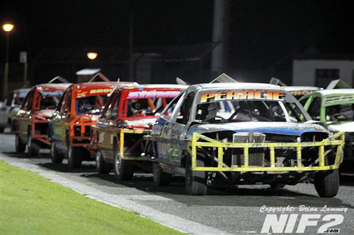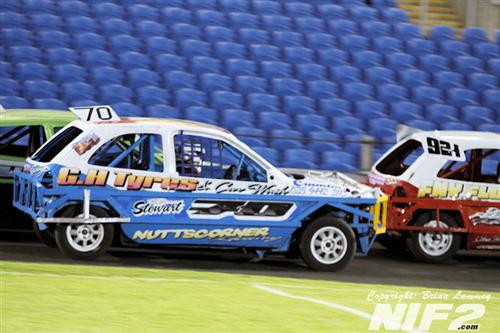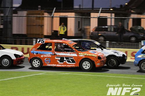 So onto the Nationals, Thomas Dilly was the big wreck in heat one, when too many cars went for too small a gap and he ended up hung up on his side on the wall on the pit bend. Heat two seen Rab Forsythe the victim of the big wreck when he came together with Glenn Bell and Gary Woolsey and got turned into the wall mid straight, the impact looked to rip the roof off the car. The final seen a controversial win for John Christie after Thomas Dilly was judged to have not held his line.