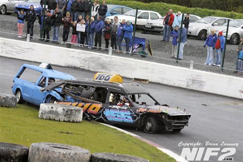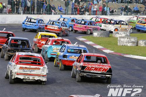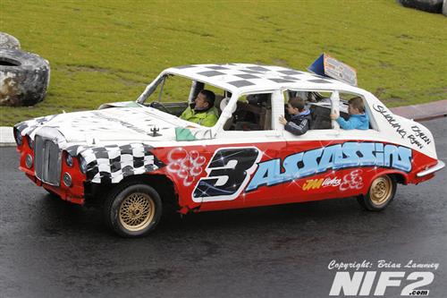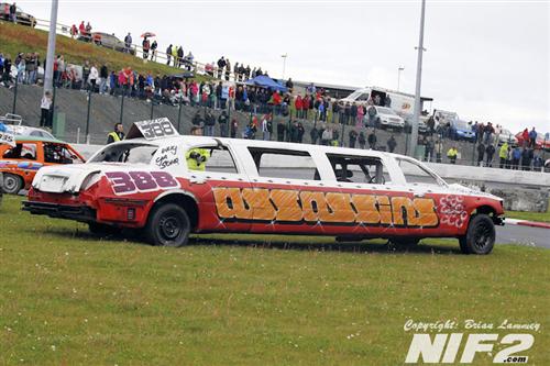 The National Bangers seen a feature race win for Davy ‘BooBoo’ Patton, with Davey O’Connor winning the allcomers and Paul Compelli winning the Destruction Derby. A selection of Hearses and a few limos made up a 17 car grid.