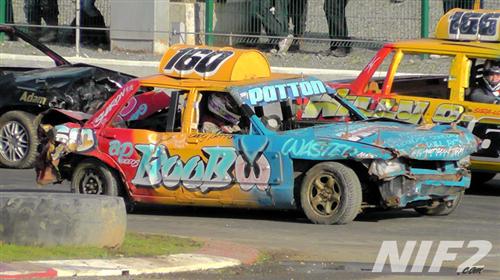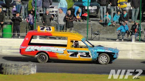 In the Bangers Kieran McIvor retained the Nutshaker title as team buckle once again dominated the feature race with Jonny Murdock second ahead of The Condoms’ Steven Reynolds. McIvor was victorious again in the allcomers with Mike Flaherty taking the honours in the Destruction Derby.