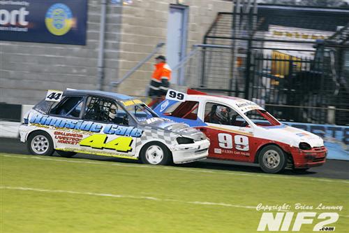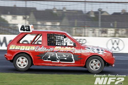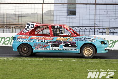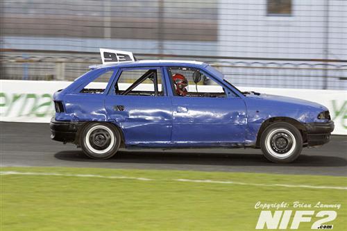 The Gp 2’s kicked off proceedings with a 17 car opening heat which included Ricky Shaw in a tidy 306, the other half of NIOval TV Jonny Teggart and if I’m not mistaken the Aghadowey 1600 Lightning Rods Irish Champion Gregg McMullan, as well as a tidy new paint job for Curtis Greer.