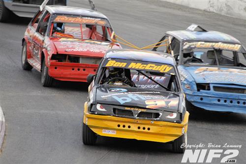 The Reliant Robins had an eventful night with several roll overs, Jamie White won both heats before rolling out of the final when a wheel came off, Billy McClean won the final when the race was stopped for one of the most spectacular rolls I’ve seen in a Robin when Lisa Seeds rolled on the exit of turn 2.