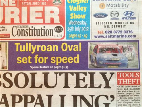 This probably reaches a greater audience than wheelspin, front page of the Tyrone Courier in the build up to the Speedweekend last year |