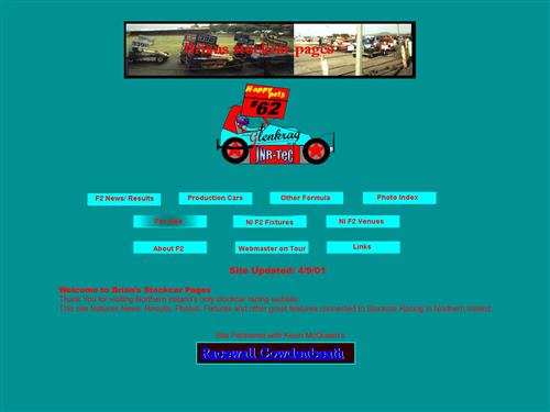 One evening, I in mid February I was browsing through websites and clicked on a link in Matt Bull’s site for “creating your own website for FREE”. I clicked on it, spend rather a lot of time pondering what I’d like to put on my website, slept on it, and decided I’d build a Stock car racing website, an F2 one. I’d been following F2 all my life, I attended most of Nutts Corner Raceway’s meetings, it seemed a good idea. I’d no digital camera, no scanner and so graphics and photos had to be “acquired” from elsewhere or made from scratch..... in MS Paint!
