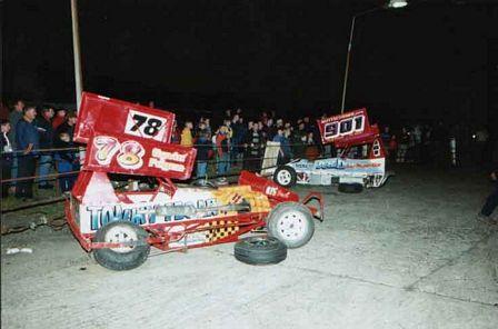 With Fegans and Thompson trading wins and blows all season the Irish Championship was set to be a rough one with Ian Thompson on pole, with Graham and Gavin upfront for company. The flag had hardly dropped when all three found their way into the ropes and posts on the first bend. Darren McKinstry became the biggest benefactor taking the 2001 Irish Championship.