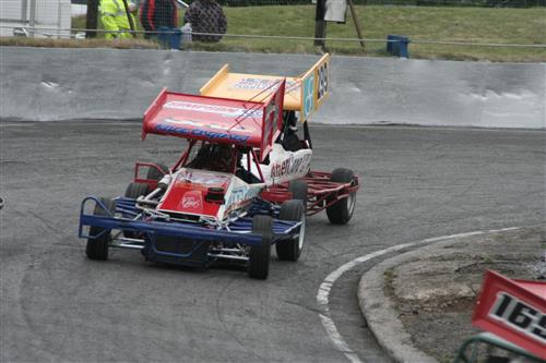Semi 2 proved to be the better watch of the 2 in my opinion. Rob Speak and George MacMillan on the front row with Dave Polley will down the grid. Speak made the better start and broke away from MacMillan only for an early stoppage for a big pile up on the back straight to group them back together, Polley by this stage was well through the field and up into the top six (I think). The restart went much the same way, Speak got away and built up a lead, Polley continued to move up through the field. The closing laps MacMillan caught and passed Speak and got far enough into the next bend to be out of striking distance, but chaos amongst backmarkers on the back straight on the last lap allowed Speak to sneak through as cars went all directions and he took the win with MacMillan second and Polley up to third.