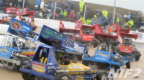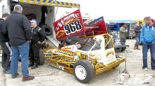 On the night Jan Bekkers was the fastest overseas driver in the time trials, with Chris Kincaid joining him on row 3 of the grid as the top NI driver. Front row qualifier Chris Bradbury was sidelined due to illness and Sam Wagner got shuffled up to outside front row. In the big race Speak got a few great starts but Moodie was much faster and once through the pack the two shared a few big hits before both went out of the world, Chris Kincaid’s hopes ended in the same bend as he ended up sitting on top of John Fortune (I think). On the restart George MacMillan broke away while the rest of the pack squabbled and wasn’t really challenged until late on in the race when it looked as though Jack Aldridge was closing in on him, Jelly Kurstens then spun on front of MacMillan putting the Scot up onto his side, Aldridge too got tangled up and it all looked like it would go down to being between Burgoyne and Hooper in the last bend, the big last bend hit arrived and to quite a lot of people’s astonishment James Rygor came from nowhere to pinch the world final right on the line with Burgoyne second, Hooper third and an army of fans reaching for their programmes to see who 783 was. It was a cracking race.