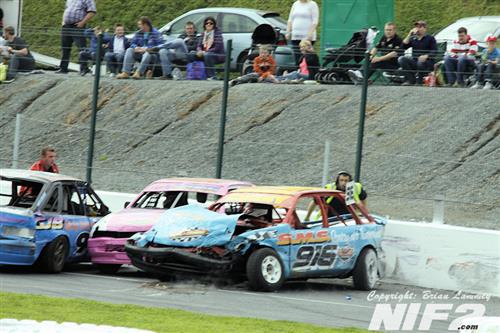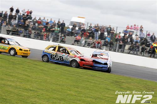 Of the support classes the Stock Rods possibly put on the best of the Championship races, with Gunner, Gordon and Bell starting in the top 3 spots it was always going to be a good one. There was some great action in the opening laps as Bell, Lattka and Jonny Cardwell battled for the lead, before Bell eventually picked up damage and went back through the pack and then out. Lattka made his way back to the front to take the win in the Irish Masters. Alan McCormack picked up second with Chris Gordon third.