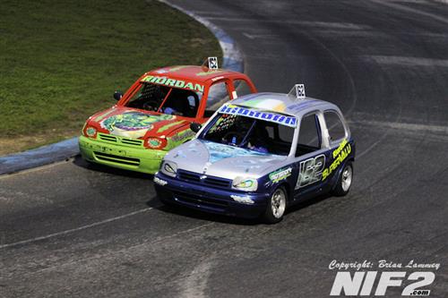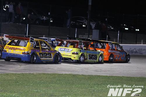The meeting kicked off with the Junior Productions where Graham Fegan took and opening heat win, Bradley McKinstry took heat two before Jamie McCurdy took the final with McKinstry in hot pursuit. In addition to the Tullyroan cars there was two visiting Nissan Micra’s from Tipperary, who raced door to door for quite a bit of the three races and as the races went on started picking off the locals and moving through the field, for the closeness in which the pair raced, I don’t think they traded paint all evening and were good to watch.