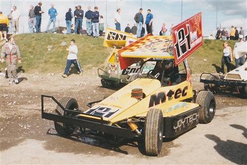 Mark Wareham debuted this car at the 2002 World final at Cowdenbeath. A real looker, with the wing set forward on it, and the from spoiler below the bumper a bit of a throwback to the elite of Nick Smith which was used as the post car when elites arrived in F2. I don’t recall anyone else ever having one quite like it. |