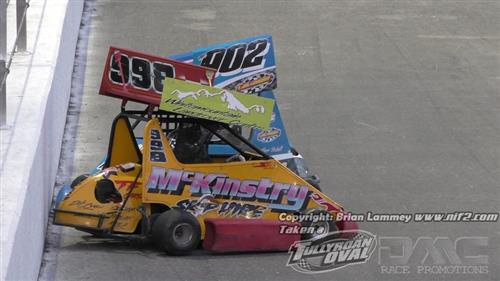 Joel Richardson was the big winner on the night by taking all three race wins in the 2 Litre Hot Rods. In the other finals there was a win for Gary Beggs (Lightning Rods), Micky McFall (Stock Rods), Jeff Minish (Superstox), who crossed the line while performing a 360 pirouette, and Keir Millar (Ninja Karts).