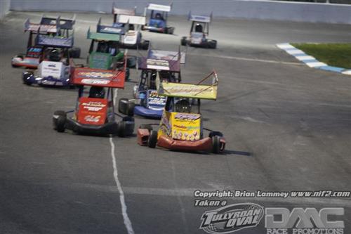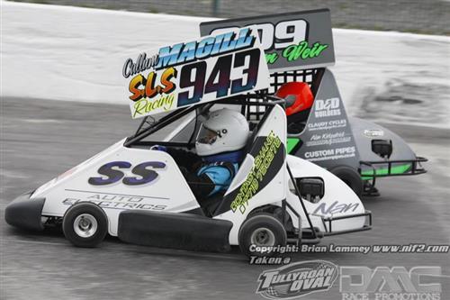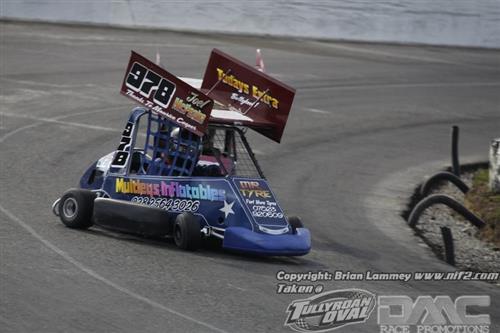 In slightly different circumstances Shea Fegan was also going for a flying finish in the Ninja Karts final. Shea led them off with a few laps to go with Adam McFall getting the better of him from the restart, but young Fegan fought back and got the drive off the last bend to get alongside McFall, McFall took the win, but had the start line been a few yards further down the straight I think there is a good chance it would have gone the other way. Earlier in the evening Matthew Nicholl and Niall Creegan had taken the heat wins in the Ninjas.