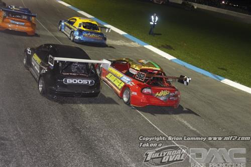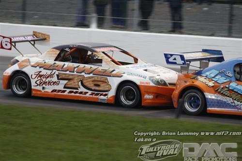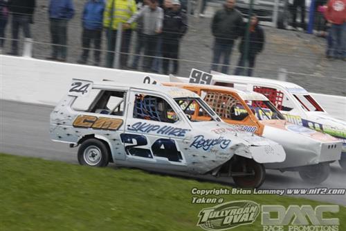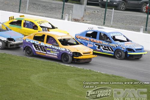 The best dice of the evening was probably between Edmund Davis and Ian Riordan in the Junior Productions, with the two rarely more than inches apart for most of the evening. Davis took the spoils in the heats before Riordan took the final victory when it was stopped early after an incident which seen Riordan across the grass and collecting Graham Fegan who clipped a marker tyre before the car went onto it’s side and into the wall, while Davis was driving around the wall taking avoiding action. I don’t think there is any doubt it’s a good car that Riordan has acquired, but to take the final on his first night in it isn’t bad going either.