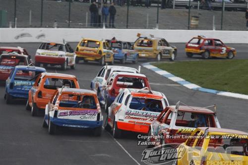 The 2 Litres exceeded their previous meeting turnout and fielded around twenty five, maybe twenty six cars providing action packed stuff throughout the night, particularly in the final when the field was backed up behind Davy Potter in second place for most of the race. The final win went to Sean Dynes.