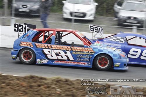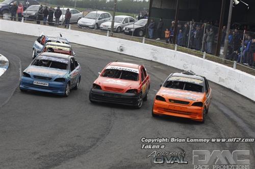 The 2 Litres were boosted by John Murray’s return in a superb looking Saxo, Paul Crawford in a Starlet and Richard Stewart in his ex Damy McMenemy Corsa as well as Scottish visitors Gordon Alexander and John Campbell. The opening heat seen a big shunt on the back straight in which Stuart Cochrane picked up heavy damage. Joel Richardson won the race on the track but was excluded for a technical infringement which promoted Thomas Dilly to the win.