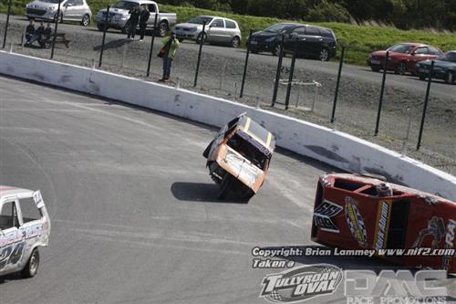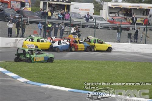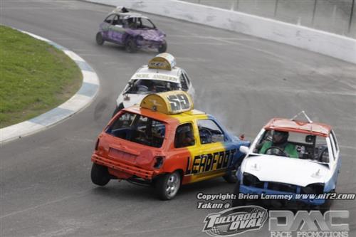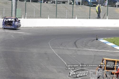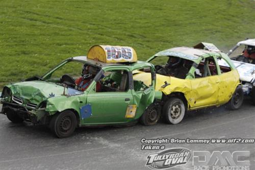 John Murray won the Micro Bangers European Cup at Tullyroan on Sunday and went on to take the all comers race too. Steven Reynolds won the DD, which was starting to feel a bit like an endurance race and I reckon it was lap fourteen before it was settled, but in a weird way it was still entertaining and ended with a head on between Reynolds and Steven Bolton who was entertainer of the day. On a side note it was good to see a Last Rites car back at Tullyroan with Kevin Moran at the wheel.
