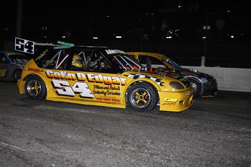The night began a 10 minute delay in the start and one of “those” Ninja kart that seemed to have more stoppages than green flag laps, it felt like it was going to be one of those nights. The 2 Litre Irish was the big race of the night with Adam Hylands and Shane Murray sharing the front row and Joel Richardson and Philip Betty on row two, from the drop of the flag the front three settled into position, Hylands pulled away from Murray who in turn was keeping a comfortable gap over Richardson, it was all to change when the leader encountered Davy Potter, I think I’m getting this in the correct order, but on the initial attempt of Hylands to get past Potter drove him wide, then he looked down the inside and Potter drove him to the grass, the lead three where now scraping for the lead and trying to pass Potter, this time Hylands went to the outside and Potter drove him to the wall, Murray got caught up with them and it was Richardson who squeezed through and into the lead, with Stephen Emerson moving into second and Mark Madill third, Murray fourth and Hylands down to fifth. Hylands soon took Murray for fourth and was going for third in the closing stages, but didn’t make the place. Joel Richardson took a well deserved win and his first title in 2 Litre Hot Rods.