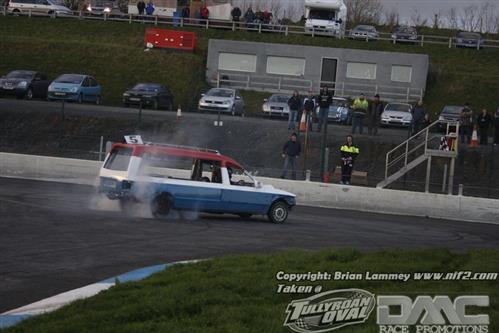 The bangers were a tad light on numbers, but also boosted by Scottish visitors in the form of The Mob. Like previous rear wheel drive meetings it was a bit lackluster, but if you’d never seen a Hearse doing do-nuts before of a Lady picking up best presented then it had it’s moments. Dave Haugh won the Final and the all comers, Sheldon Murray won a short and sweet Destruction Derby.