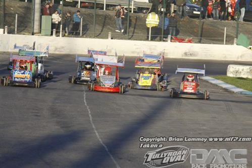 Adam McFall won the Ninja Karts Champion of Champions race at Tullyroan Oval on Sunday in what was probably the race of the day at the out of season meeting.