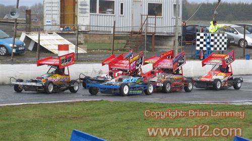 The F2’s got their 2015 off to a great start with a 23 car turnout at Nutts Corner Raceway. New comers, next generation racers, former Junior rivals, call them what you like, Bradley McKinstry and Graham Fegan Junior got quickly acquainted with the bumpers in the class with a few big digs at each other throughout the day, given that the pair of them were making their senior class debut both of them did themselves proud and both started each of the races from the white grade, I can see a rivalry forming there that could be something to watch in years to come.