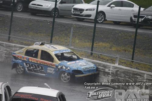 The Nationals went into the night with points title and the final place at this year’s world final still to play for, although it was going to take results to fall favourable for Carl Sloan. Sloan started off the front of the yellow grade with McCurdy who he was chasing starting mid pack of the reds and it looked like he could pull some points back in heat one. That wasn’t to be however as Sloan was the first to slip up in the conditions and was soon facing the wrong way in turn four with most of the pack going around him, including McCurdy. Hylands took the win, Sloan’s misfortune confirmed put him out of reach of the cars ahead and Glenn Bell did enough to secure the NI Points title.