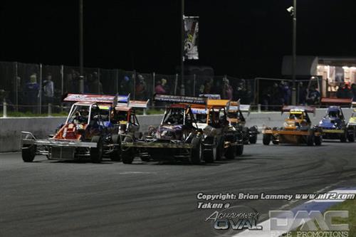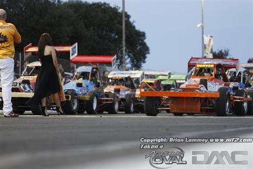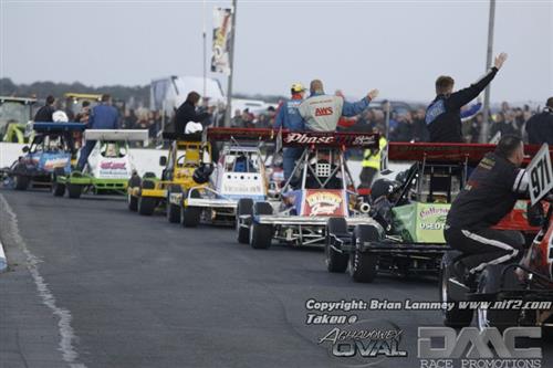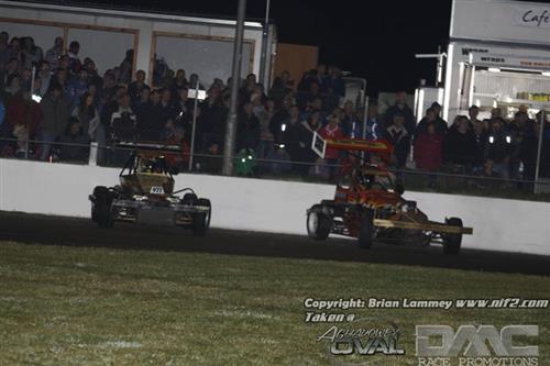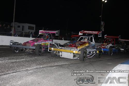 Barry Stephen led them away on the second restart with Gary Grattan in second and Steven Jackson third, at this stage Bradbury and Gilchrist having made quite a bit of process through the field. Stephen got far enough ahead into the first bend to withstand a challenge while Jackson and Gary Grattan came together leaving Grattan out of the race and Jackson well down the order. Bradbury was now up to second and soon challenging for the lead pushing Stephen wide in turns three and four. While Bradbury was building up a cushion Denver Grattan was attacking Stephen for second and after a few laps got through on the inside but David Frame, Stuart Gilchrist and Jordan Salmon were now in a five way battle for second.
