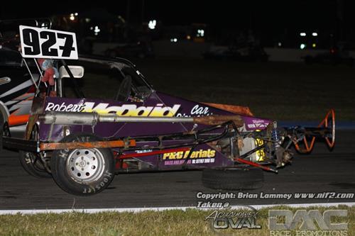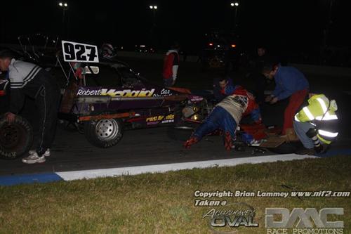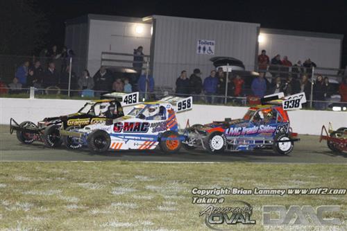 After the sort of build up you’d expect from a “Stockcar” world final the action got underway under the floodlights and exploded into life in the first bend as a number of cars ended up in the wall in turn one, this called for a complete restart and drivers were given time to work on their cars. Amongst others Chris Roots, Ben Majoram, Gregg Hyndman, Gary Chambers and Adrian McKinstry found themselves out of the race.