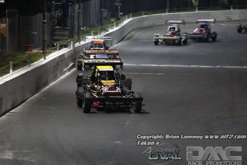 On what was to be the final restart of the race Jackson and Gilchrist battled for third which let the lead pair away and with just over a lap to go Jordan Salmon was close enough to put a hit in on Bradbury but perhaps pounced too soon, pushing the 886 car wide around turn three and four and getting up the inside of Bradbury down the straight as they crossed the line, only for Bradbury to come back at him and leave him in the wall in turn one and out of the race, Bradbury now had clear track behind him and went on to take the win with Gilchrist second and David Frame third. Three local finishers crossed the line on down the order being Geoffrey Moffett, Darren Bevan and Lucinda Smyth.