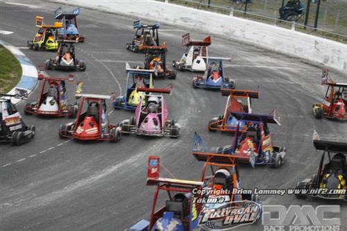 Banger drivers might feel differently, but the Ninja Kart Irish Championship was the big event of the day. Sam McNiece led from pole for half the distance and was being chased down by Jack Hazlett and Shea Fegan, with young Fegan starting to look the quickest of the three once they got up to speed. The lead three had broken well away from the pack and by mid distance were catching traffic and it was in that traffic McNiece tripped up and Hazlett seized the lead and got a bit of a break on Fegan too. Hazlett went on to take the win with Fegan second and Adam McFall third. I think all three are moving on to bigger things next season, so it was a fitting way to round out their Ninja career. Hazlett also claimed the win in the Revenge race.
