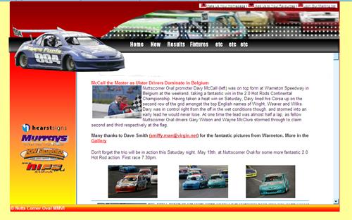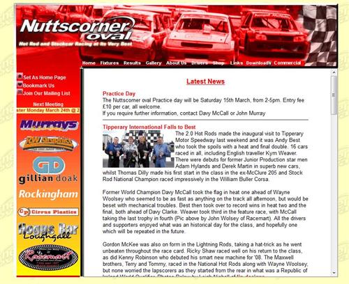 Over the winter of 2005/2006 it was announced that Ballymena Raceway would have a new website for 2006, and from memory a date was set for release of it. Meanwhile away from public scrutiny and anticipation I had been asked to build a site for Nuttscorner Oval, which would go on to be released "when it was ready", which turned out to be a few days ahead of the Ballymena Raceway site.