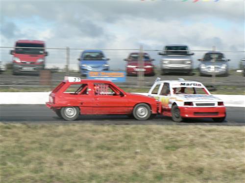 Sometimes it’s hard to tell but the Junior classes in Northern Ireland are now non contact, a bit of a handicap for upcoming drivers wanting to move into contact formulae when they progress from the Junior class, but insurance companies seem to take a dim view on kids driving into each other on purpose. It wasn’t always like that though, the Junior Productions and Junior Stocks were both contact classes in the early naughties. The odd thing was the way they progressed, the Junior Stocks at Nutts Corner Raceway which promoted contact class went on to become non contact and eventually merged with Junior Rods while the Junior Productions at Nuttscorner Oval which promoted non contact racing continued for a few more years of having contact Junior racing. |