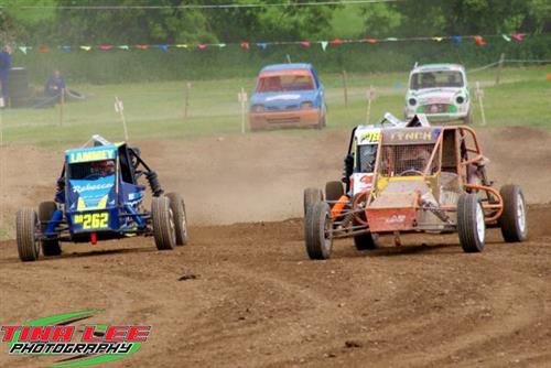 The Sunday of the opening weekend had the best car turnout the class has had so far, with 5 cars out, my misfortunes continued with a 4th in heat one after I pulled the last bit of rip and roll off my goggles sitting on the line to go and couldn’t see for most of the race. Heat two I was third with the throttle jamming as I crossed the line, second in a dramaless heat three before bursting a brake pipe in the final and finishing with no brakes and returning to the pits with a huge stone wedged into the gear linkage preventing me from knocking the car out of gear which made for some fun in the pits trying to stop the car on a hill with no brakes and stuck in gear.