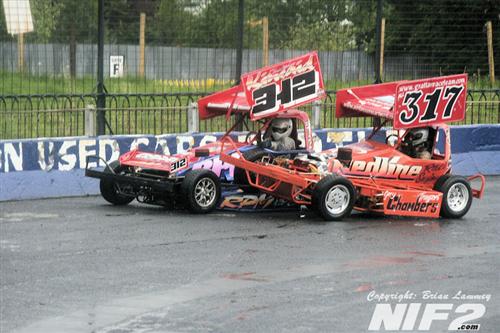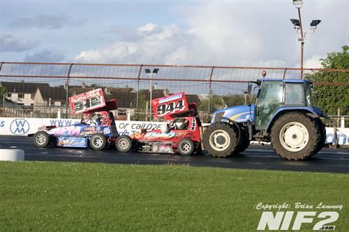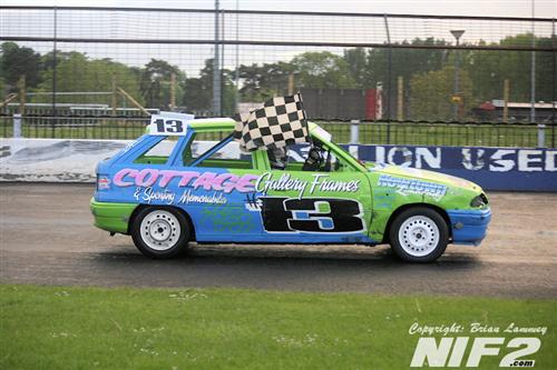 Heat one went to Gary Blair, with Gavin Fegan taking the second heat, in which most of the action came in the first bend with Conor Hughes ending up on his roof and Denver Grattan and Christopher Kincaid ended up tangled. Hughes made it out for the final, only to last a few laps before the front suspension collapsed, Craig McConnell took the final win.