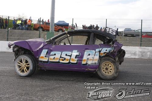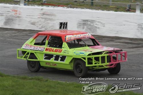 Aside from the Bangers the ProStocks had some excellent racing with Greg McMullan taking the final win. Despite being a bit down on numbers the 1300s had an excellent final with Adrian McKinstry taking a comfortable enough win while the rest of the field were engrossed in a hard hitting battle for second. While on the subject of the 1300’s a special thanks to Anthony McIvor for putting NIF2.com on the car and NIOvalTV.com, it’s much appreciatted.