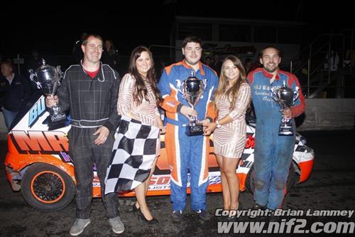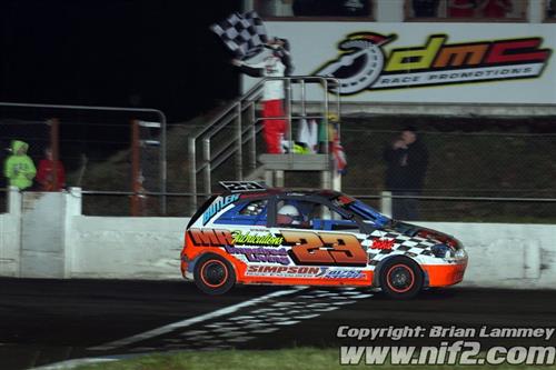 On the first start McMillan had got on front on Cardwell and after a lot of laps and another stoppage he did it again. While McMillan led and Marc Morrell gave chase further down the field a strange chain of events was unfolding that would ultimately change the outcome of the race, Chris Lattka had been running sixth when suffered a misfire and probably engine failure coming onto the home straight where he lost power and was clipped by Ed Davis, this burst the radiator on the 117 cars which put fluid down on the track making the conditions slippy, in the laps that followed as the cars tipped toed round McMillan backed the pack up and eventually Marc Morrell squeezed through to take the lead, with McMillan being sidelined after picking up a puncture soon after. A stoppage followed and Morrell led defending champion Stevie McNiece for the remainder of the race, when it had looked like the pair had enough of a gap for McNiece to mount a challenge on the outside there was a further stoppage with just a few laps to go. Morrell took the win with McNiece runner up and Jonathan Lattka third.