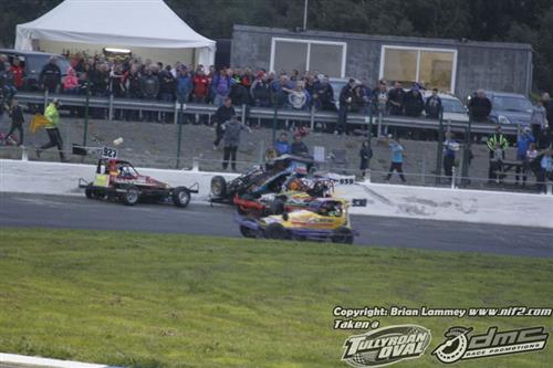 The allcomers heat seen plenty of action with Denver Grattan clashing with Barry Stephen after Stephen had followed him in during the European, before a slowing Stephen was hit on the back wheel by Gary Grattan, the pair also have previous, leaving the two cars stranded across the track. Kenny McKenzie also had a spectacular roll on the top bend. David Frame took the win. Later in the night Brett Wesbroom won the meeting final.