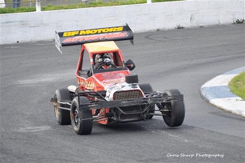 I was one of the first to arrive at Aghadowey and by the time I got through sorting tyres sheets and doing this and that I still managed to be one of the last out the gate to practice. It had been a wet day, the track was quite wet and my first few laps of practice didn’t instill too much confidence as I first spun on the exit of turn two and had to tip toe across the grass to get back onto the black stuff and then a few laps later gave it too much on the straight and dumped the car across the grass heading towards the pit bend. There was a point I thought I had made a huge mistake buying a Superstox and there was a point when I was willing the practice to end and I could get back out the pit gate. I put a few more cautious laps in and finished the session. I put my less than impressive practice session down to being the only car out on track, I’d no measure of how hard to push and I think I’d perhaps pushed too hard or at least too hard for my ability to drive the thing at the time. I put my spins down to experience and hoped I’d learnt from them, my aim for the next race was just to finish and not spin.