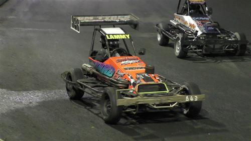 I led the whites away for heat one and made a poor start because I still haven’t sussed out how to stop my goggles steaming up on the rolling lap and didn’t see the flag, after only a few laps I put a wheel over the kerb and spun on turn 2, after a bit of back and forwarding I got turned round, rejoined and did a few more laps before getting hit by Aaron McNeilly, seeing the wall coming towards me and planting it to spin rather than go in the wall, that spin sent me onto the infield and another race was seen through bogged in on the grass.