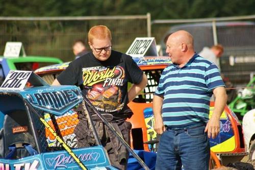 On to October then, the same weekend as I secured the NI Points title for my class in Autograss the previous year and it was time for the Superstox Irish. A week of wrestling with tyres led up to the big day. It used to take me an age to get the Autograss car ready to go racing and early signs with the Superstox tell me that trend will continue, but at least I know or hope it’ll get easier. Gary Beggs offered to tow me to the Irish on his van, the help is always welcome and it does no harm to have a former World Champion in your corner when you’ve no idea what you’re doing. A greasy track meant practice began with a spin. Keen to put that behind me we made a few changes and I went out again and kept it pointing the right way.