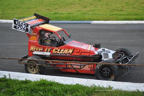 Ballymena’s 40th Anniversary was one of the meetings I should have missed with Autograss commitments, but as it turned off it was rained off and I got to Ballymena. The highlight of the meeting for me was the match race of the legends and the show of old cars, Billy Finnegan’s cars, Ivor Greenwood in his own old car and another ex Greenwood car restored on display with Walter McNeilly also having a run out in son Aaron’s Superstox. Ormond Christie also had a run out in John’s National. |