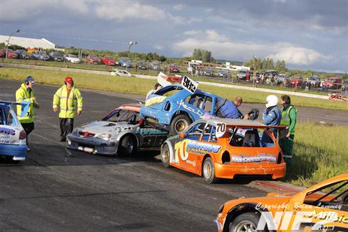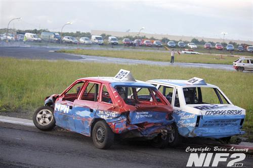 Not surprisingly it wasn’t long before the drama began, in the opening heat Sean Dynes got out of shape on the exit of turn two, collecting oncoming traffic, and when the dust settled Gary Wilson’s car was perched on top of Shane Murray’s and the first stoppage of the evening was required.