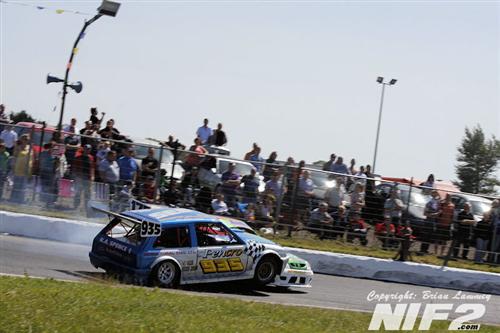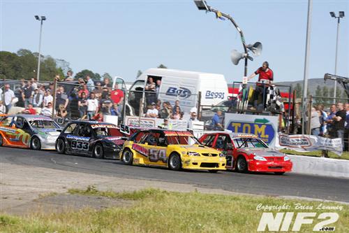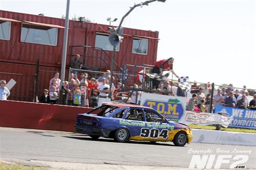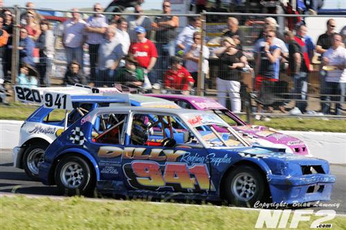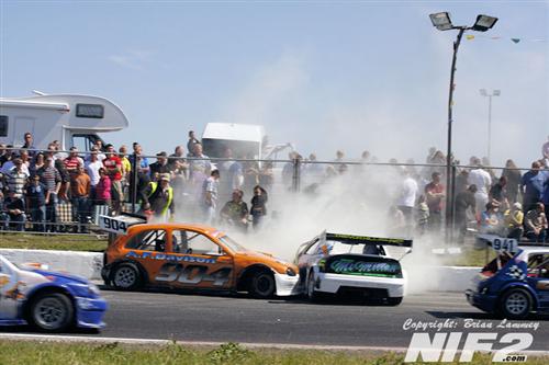 Even after the previous night’s car thirsty final the ProStocks still got 24 cars on the grid for heat one, which was won by Stuart Agnew. Heat two also went the way of Agnew, putting him on pole for the Golden Helmet final. Perhaps not as lively a race as the Irish Open, but the ProStock final was once again a hot and heavy affair, and unpredictable. Billy Finnegan Jnr took the honours ahead of David Morrison and Adrain McKinstry.