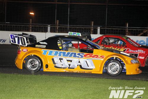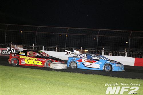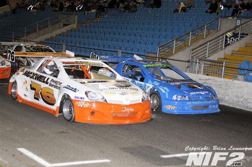 A decent turnout as well for the 2 Litre Hot rods, although it dwindled somewhat as the night went on. Nineteen cars took the green flag for the opener, with Garry Campbell and Wayne Woolsey on the front row of a closed grid for their UK Masters. Woolsey stayed with Campbell throughout the race and made several attempts to pass, but had to settle for second as they took the flag.