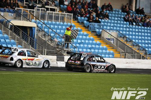 Shane Murray took pole for the title race, sharing the front row with Derek Martin, with only twelve cars remaining to start the final. The field was soon depleted even more when Howard and Heatrick came together as the cars crossed the line leaving Howard stranded on the home straight and Heatrick out. On the restart Martin and David McMenemy got past Murray in the opening laps and Martin pulled away. It wasn’t until late in the race that Murray regained second, but was unable to do anything about Martin up front. Derek Martin took the win with Shane Murray second and David McMenemy third. The drama wasn’t finished though as Murray first went off the speak to the stewards and then refused to take part in the trophy presentation and was excluded from the result, promoting McMenemy to second and Beatty to third.