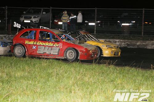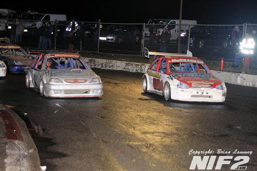 The ProStocks Irish championship was welcomed on track with a fairly heavy shower which continued throughout the race. Billy Finnegan took a comfortable win over Davy Morrison, with Neil Capper promoted to third after Adrian McKinstry who was third over the line was docked for jumping a start, I think.