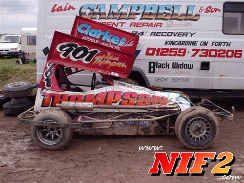 Graham Fegan’s domination in the new DK car continued with another final win, before the F2’s were on their travels to the British Championship at Cowdenbeath. Graham Fegan was the top qualifier for the big event getting a row 3 start but was taking out early on after Scottish star Stuart Gilchrist hit a marker tyre and rolled high in the air, ripping the wing off Fegan’s car as he drove under the airborne 477 car. The title went to Barry Goldin. The following day Ian Thompson took a win in the heat and a 5th in the final of the Cowdenbeath World Qualifying round.