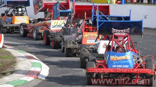The F2’s got their 2015 off to a great start with a 23 car turnout at Nutts Corner Raceway. New comers, next generation racers, former Junior rivals, call them what you like, Bradley McKinstry and Graham Fegan Junior got quickly acquainted with the bumpers in the class with a few big digs at each other throughout the day, given that the pair of them were making their senior class debut both of them did themselves proud and both started each of the races from the white grade, I can see a rivalry forming there that could be something to watch in years to come.